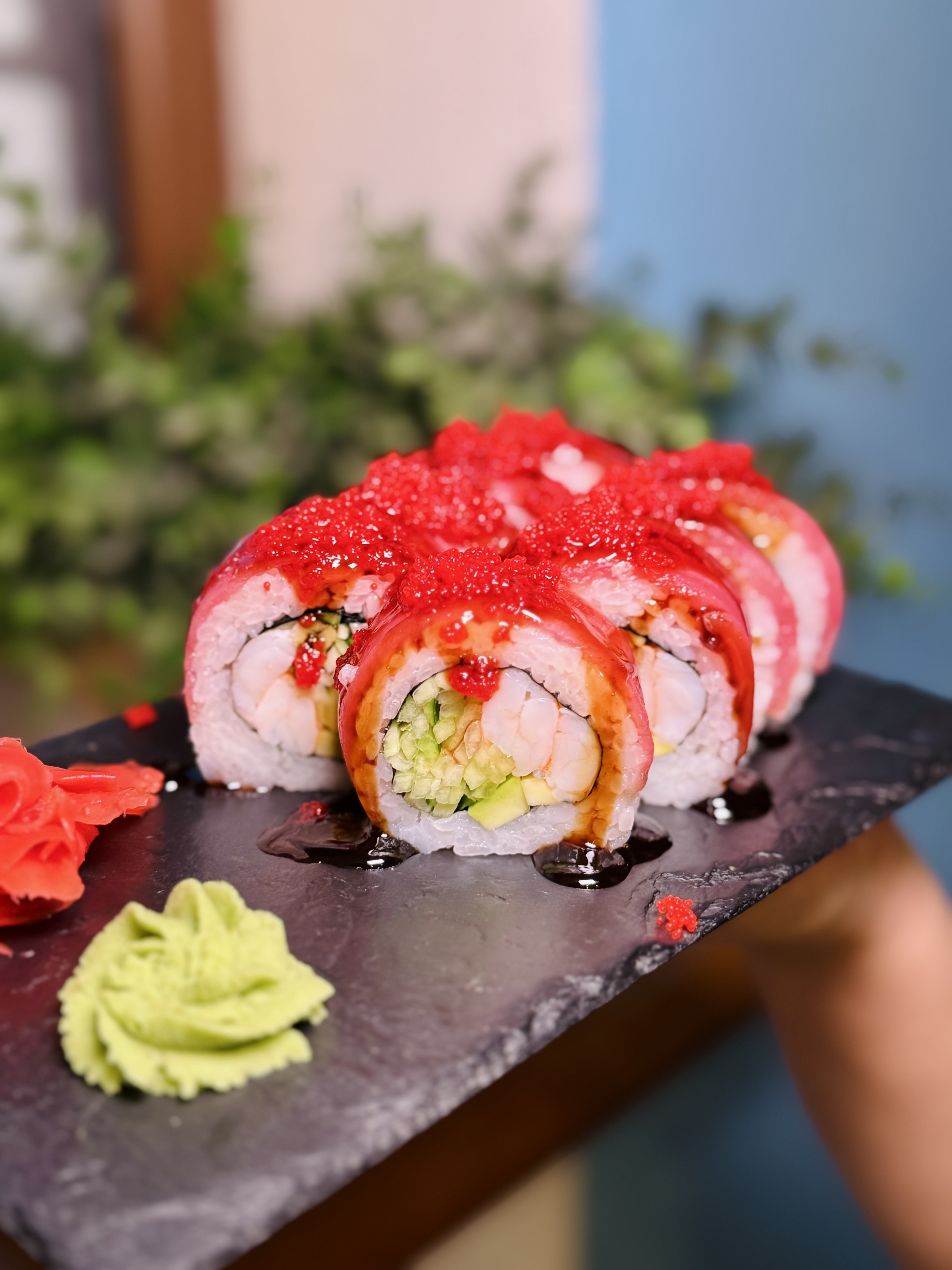 НОВИНКА! Дракон з лососем та креветкою темпура 340г.